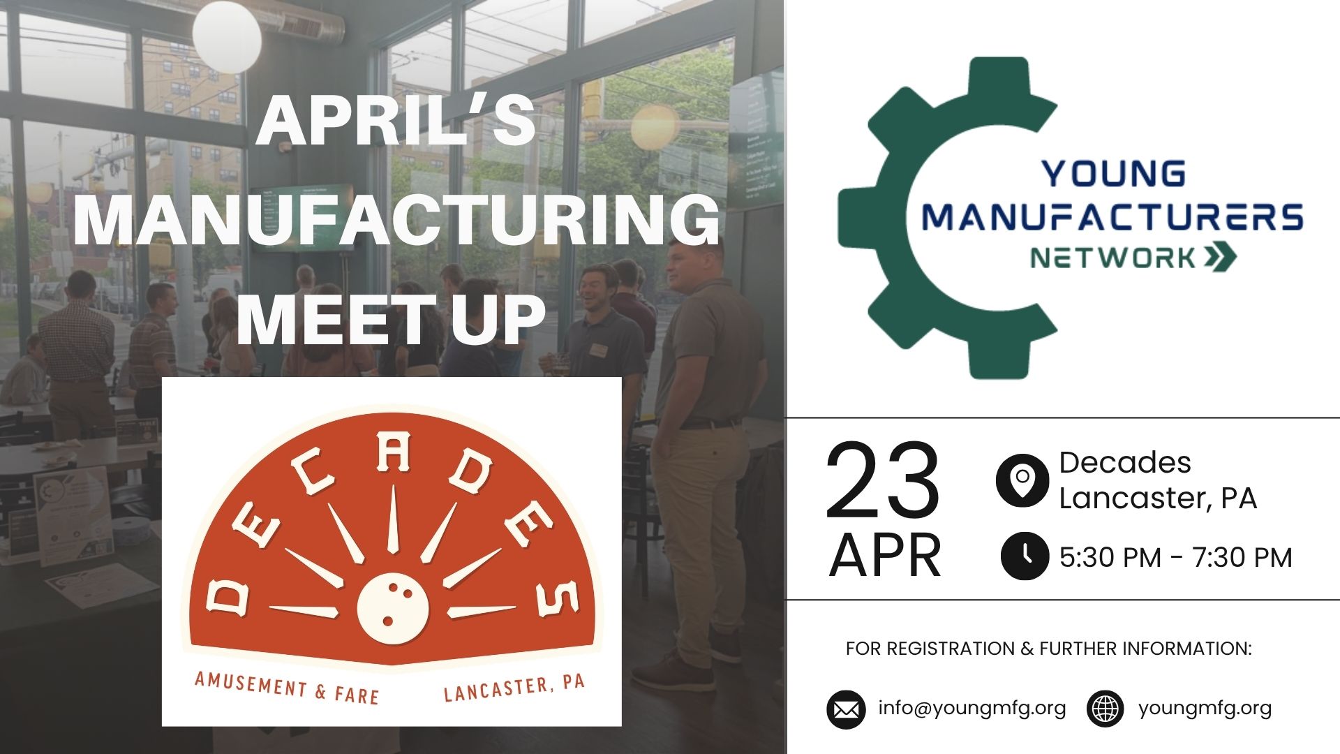 Please join us for April’s “Manufacturing Meet Up” at Decades in Lancaster, PA! We will have time for networking and connecting with others in our industry, and drinks and light appetizers will be provided. Membership is required to attend.
