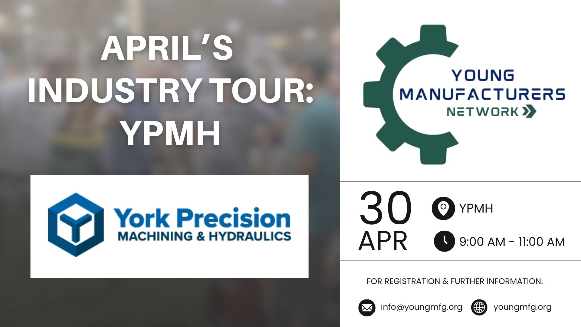 Members, please join us for our April Industry Tour with the Young Manufacturers Network! We will be visiting York Precision Machining and Hydraulics in York, PA on April 30th from 9:00 AM – 10:00 AM for a tour, company overview, and Industry Veteran storytelling session.