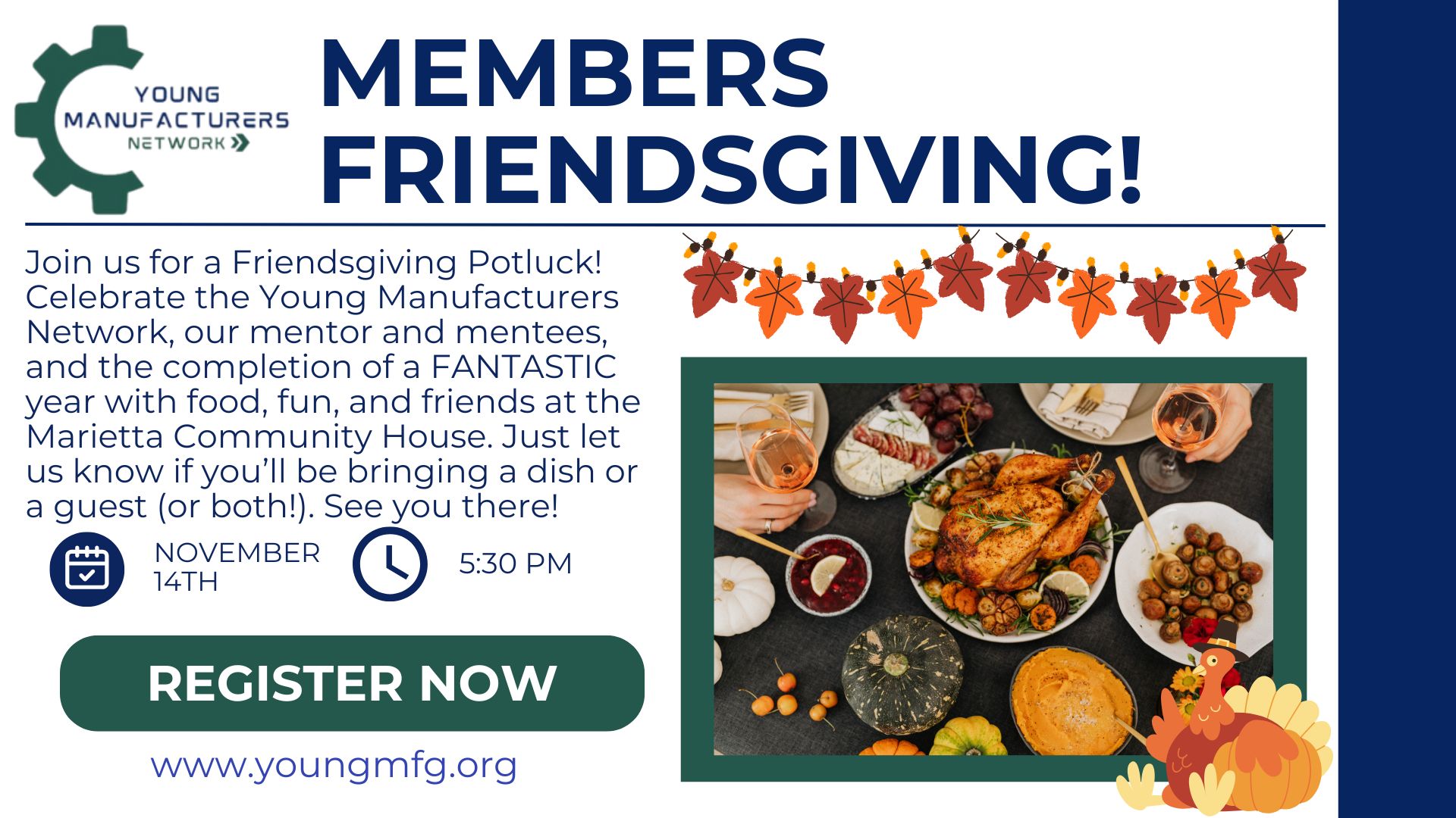 Join us for our Friendsgiving Potluck! To celebrate the second year of the Young Manufacturers Network and the completion of […]